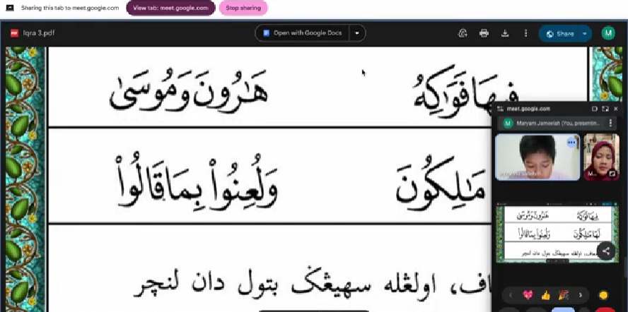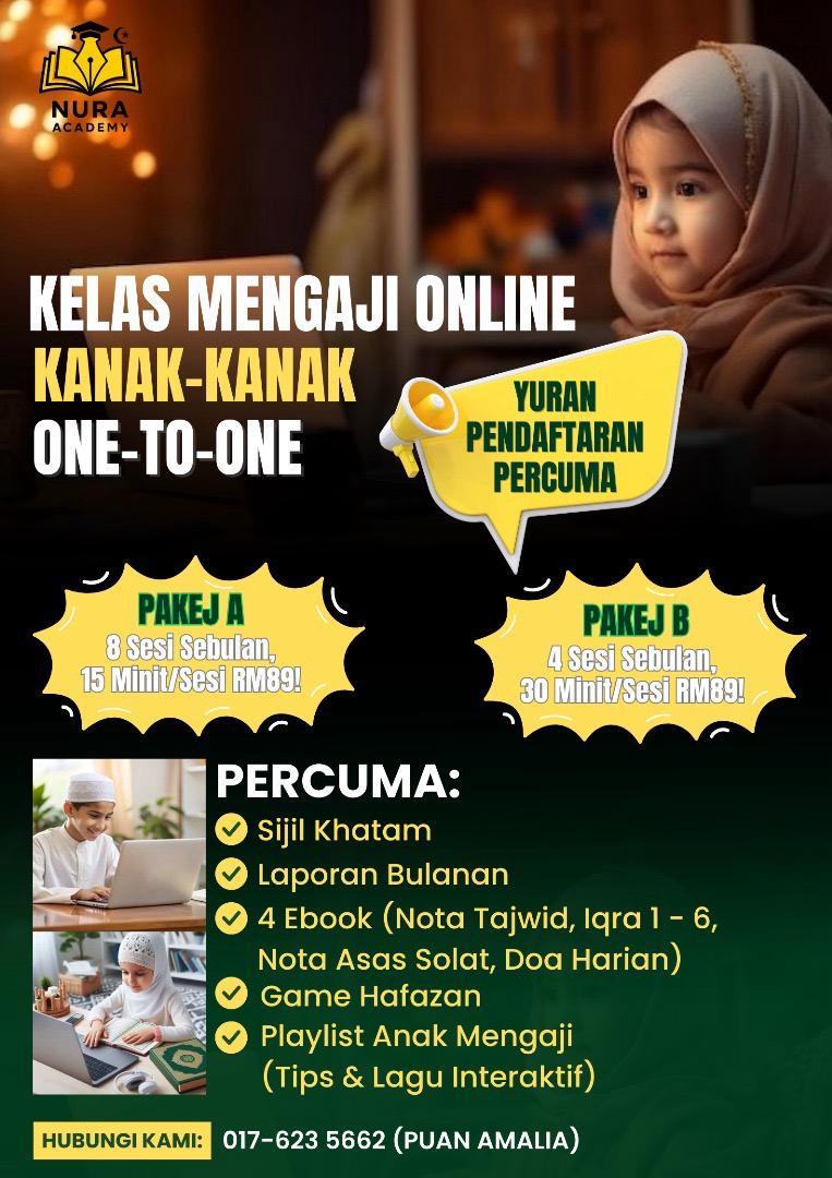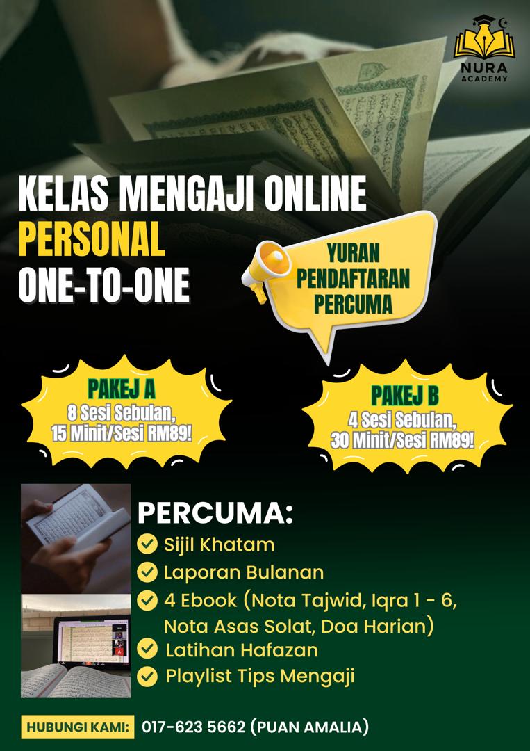 Kelas dijalankan secara 1-to-1 online agar pelajar lebih fokus dan guru dapat memantau bacaan dengan lebih teliti.