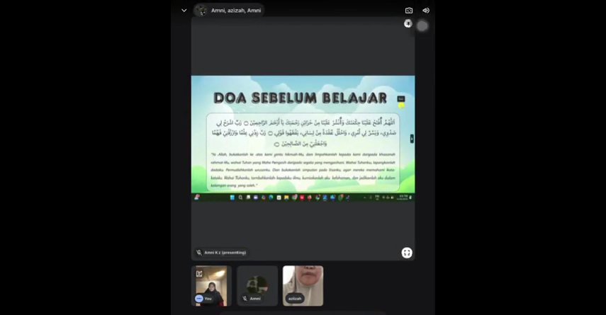Kelas dijalankan menggunakan Google Meet atau Zoom. Link kelas akan diberikan oleh guru sebelum sesi kelas bermula.